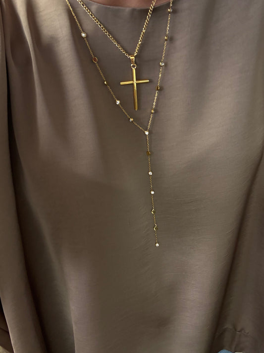 4 Layered Pearl & Chain Necklaceaux Pearl * Lobster Clasp * 16" L