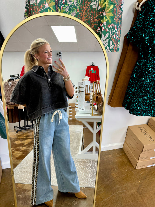 Barrel Jeans with Splatter Paint Detail- Oyster Grey