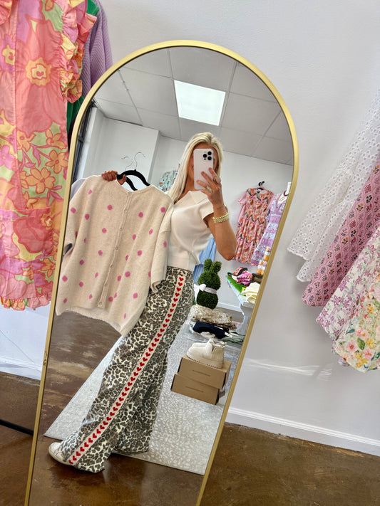 Leopard Printed Striped Wide Legged Pants