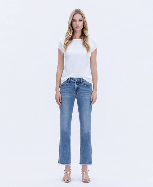 MID RISE RAW HEM CROP STRAIGHT JEANS V2750N