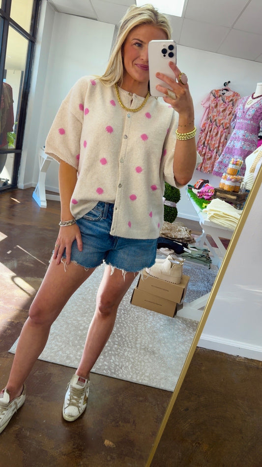 Short Sleeve Crew Neck Dot Cardigan
