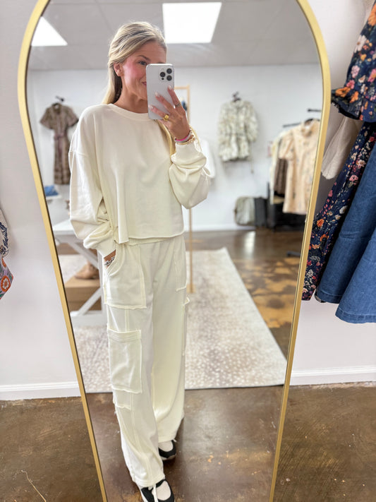 GARMENT WASHED PLEAT DETAIL SHORT SLEEVE TOP AND PANTS SET