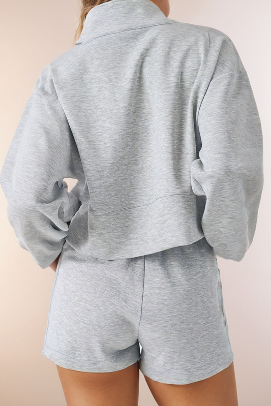 Womens Half Zip Long Sleeve Sweatshirt and Shorts Lounge Set