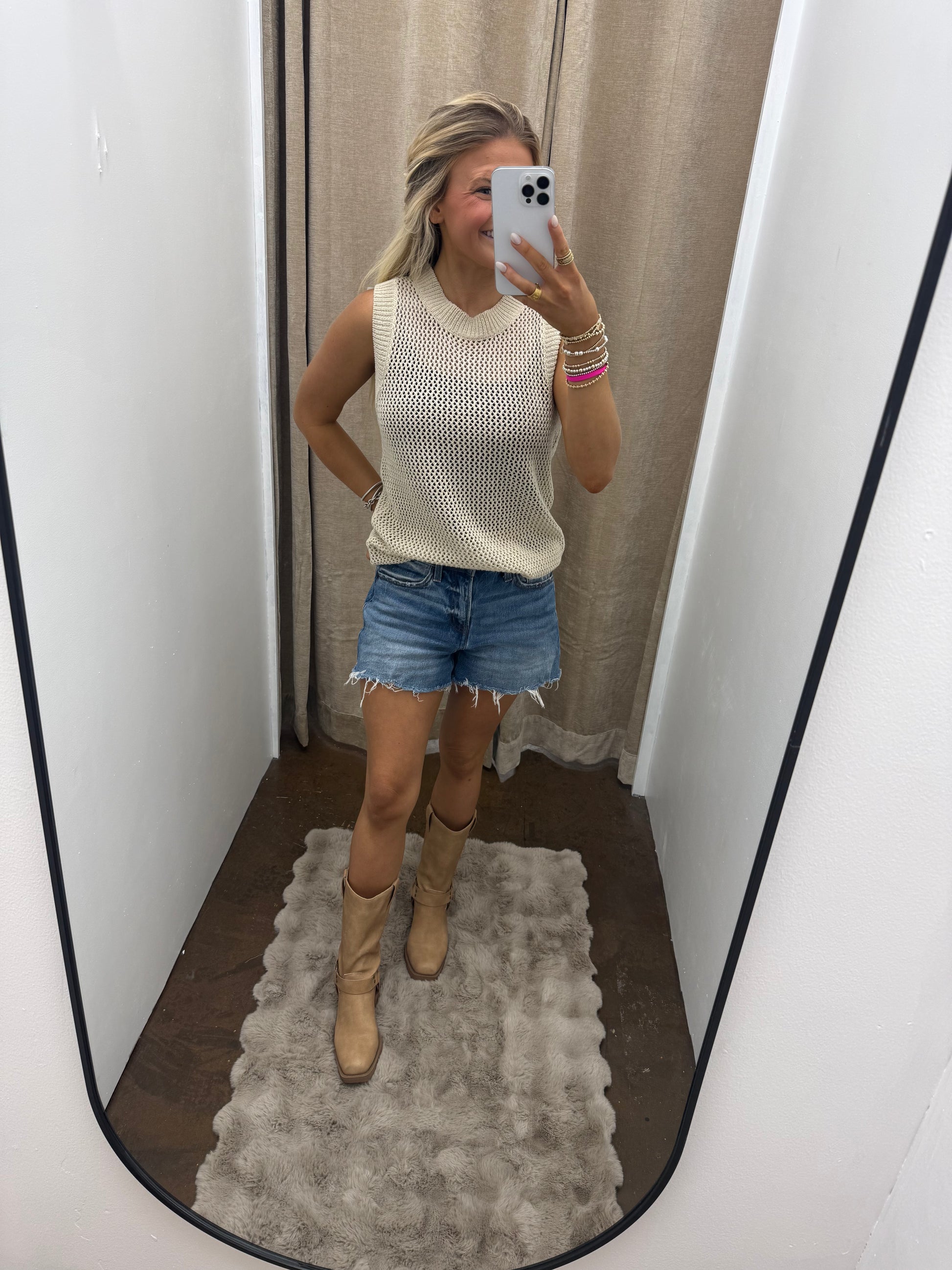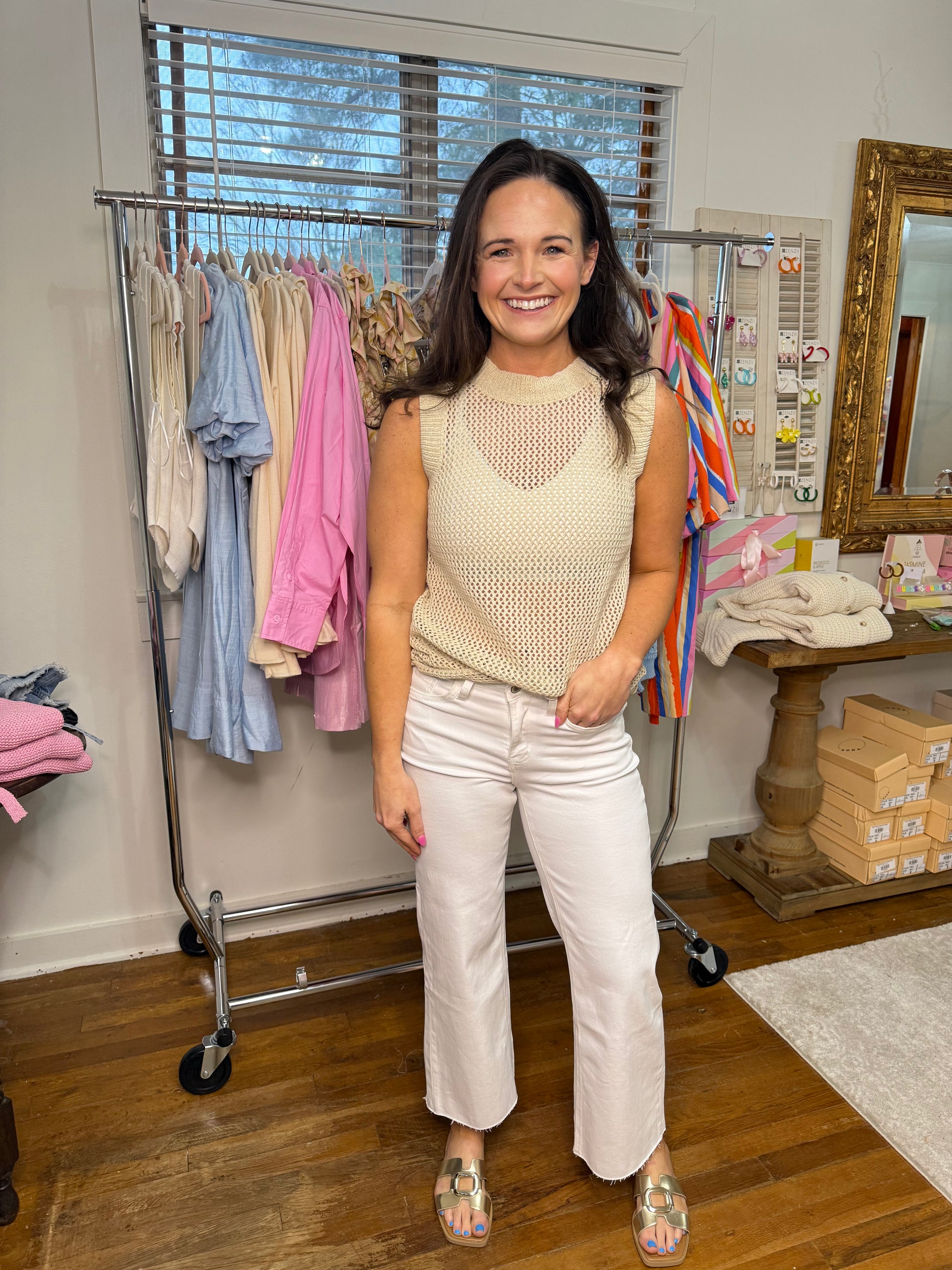 Crewneck Fishnet Sweater Tank