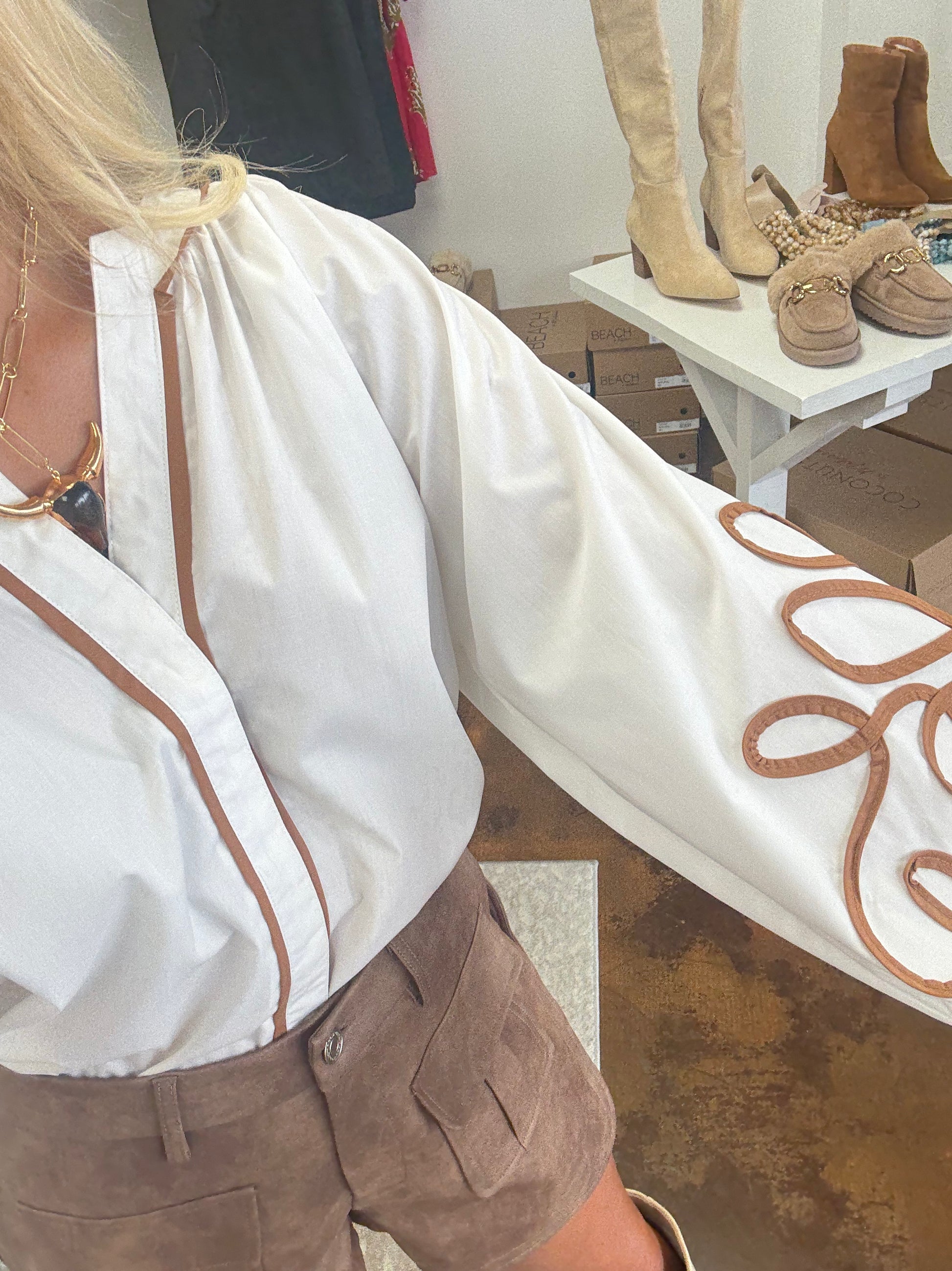 Soutache Detail Blouse Model Height: 5'1" Wearing Size Small